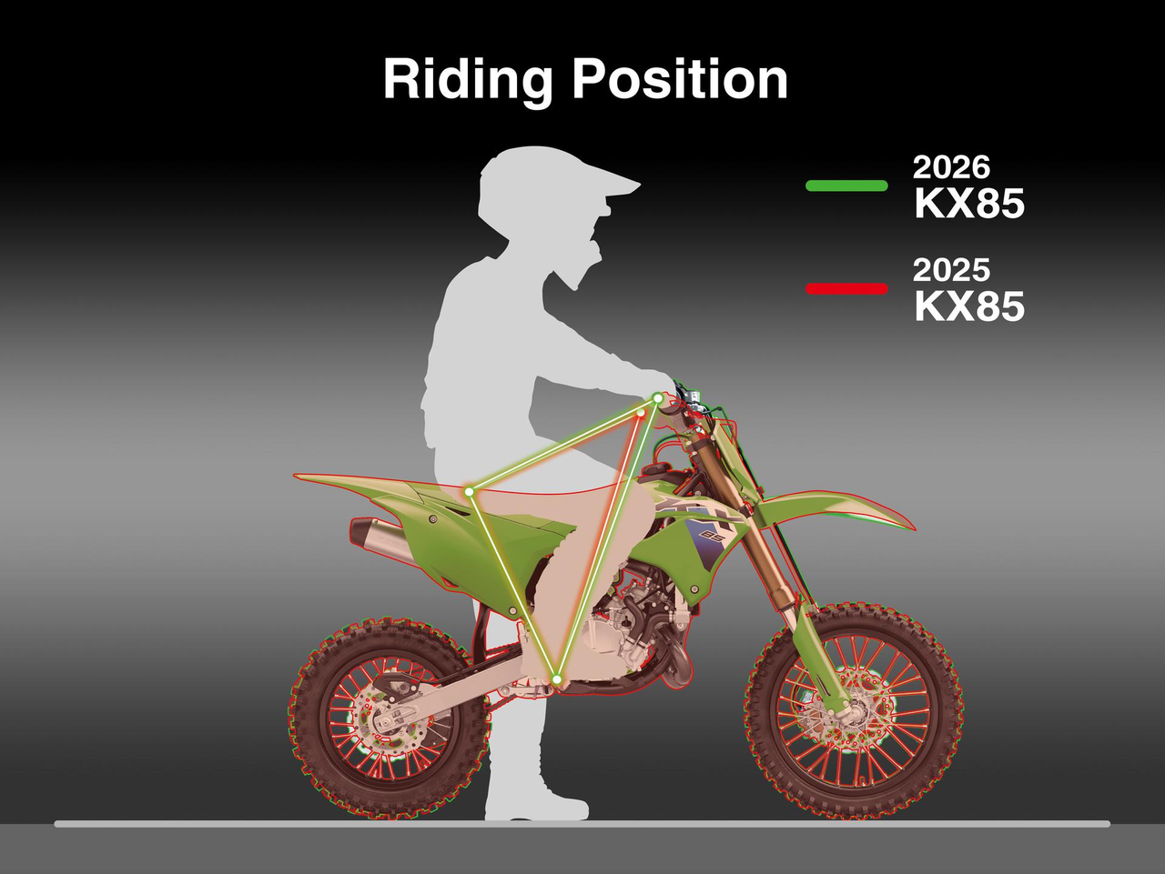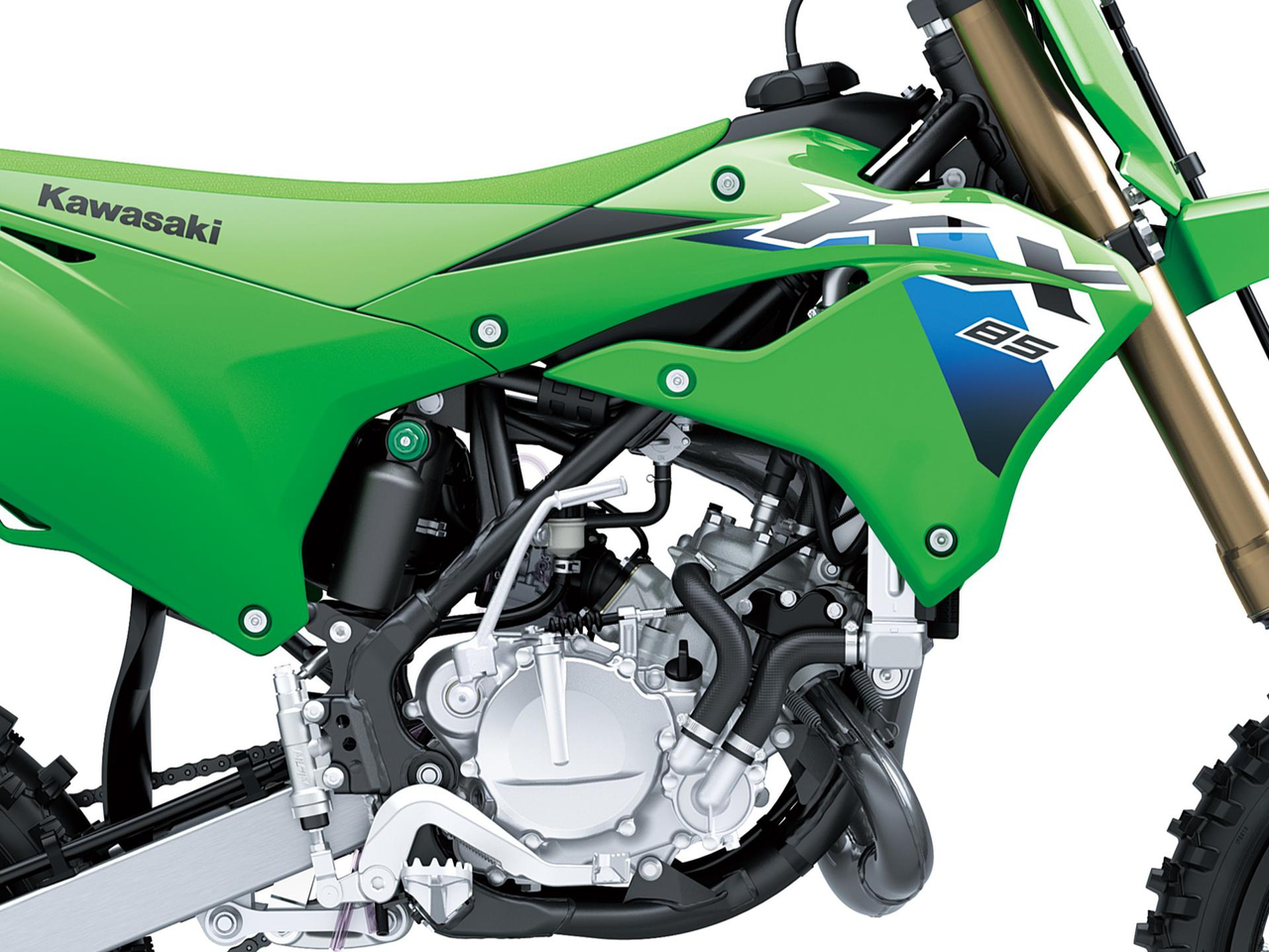 Powered by a proven 84cc engine combined with a chassis designed to maximize engine performance, the KX85 motorcycle is engineered to give young racers a competitive edge. With factory-inspired components and a choice of wheel sizes to accommodate a wider range of riders, these serious race machines help carve the path to the podium.
